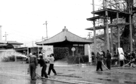 また、岐阜県中濃婦人防火クラブは平成15年10月、中濃地区消防組合管内7市町村の事業所などとともに初期消火の競技大会に参加しました。この「合同初期消火技術競技大会」は18回を数える恒例イベントです。大会では、粉末消火器消火競技、屋内消火栓注水競技など5部門に分かれて競技がありました。参加したクラブ員や、危険物施設・事業所の防火管理関係者は火災の怖さ、消火の難しさを再認識し、適切な通報や初期消火技術の重要性を熱心に学びました。