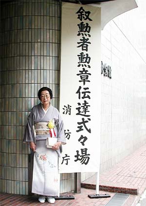 平成14年秋の叙勲において、⻘森県婦⼈防⽕クラブ⽵内ミキヱ⽒が、勲五等瑞宝章を受賞されました。