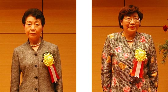 平成14年度の消防功労者総務⼤⾂表彰に12名の⽅々が受賞されました。そのうち道府県婦⼈防⽕クラブ連絡協議会の会⻑である下記2名の⽅が受賞されました。