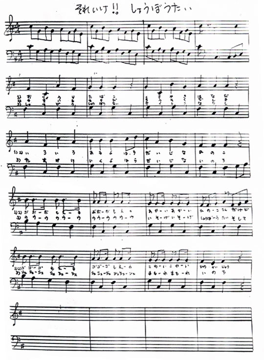 世羅⻄町の⼩国保育所において、防⽕研究発表会が⾏われました。この発表会に、⼩国保育所つばき分園の園児・職員が作詞、作曲した「それいけ︕しょうぼうたい」の歌が披露されました。この曲は、軽快なリズムと乗りの良い歌で、防⽕パレードにも、拍⼦⽊に合わせて元気に歌い、防⽕防災のPRに務めています。