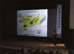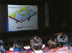 武藤茂⼦会⻑のあいさつの後、郡上広域連合消防本部の署員が救急業務などをテーマに意⾒発表を⾏い、続いて、⽇置憲正中消防署⻑兼地震対策官が「地震と防災対策」と題して「2005年までの東海地震厳重警戒期間」に備えて地震防災対策の重要性と、安全管理についての講演を実施しました。