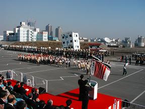 松⼾消防50周年記念の年にあたる今年の松⼾市消防出初式は、平成16年1⽉7⽇に消防訓練センターで⾏われました。
