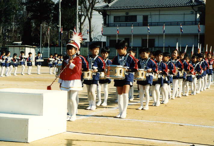演奏した曲は、「ジッパ・ディ・ドゥー・ダー」「ミッキーマウスマーチ」「イッツ・ア・スモールワールド」「星に願いを」の4曲です。年中組の時から基本動作や太⿎のリズム打ち等練習の成果で、⾃信に満ちた⼦供達の顔が印象的で、かわいらしい中にも堂々とした演技に、会場に来ていた⼈達からは、盛⼤な拍⼿と歓声が送られました。