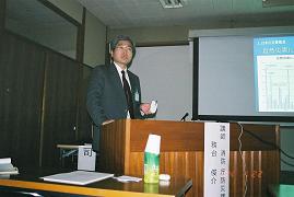 研修会では主催者・来賓の挨拶に引き続き、神⼾在住の料理研究家、坂本廣⼦先⽣をお招きし「⾷と防災を考える」というタイトルで講演をしていただきました。家具の下敷きになった娘さんに⼼肺蘇⽣法を施し、無事息をふきかえさせたこと、重いレンジやテレビが激しい揺れで⾶ばされて壊れたのに較べ、キャスター付きの家具は移動しただけで壊れなかったこと、避難所に⼊所できなかった⾃宅避難者には⾏政からの⾷料の⽀援が遅れて、⽇頃から⾷料をストックするなど⾃分達の備えが⼤事だと再認識したことなど、実際に震災を体験された先⽣のお話に、参加者は真剣に聞き⼊ってました。