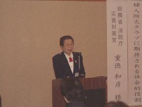 次に総務省消防庁の務台俊介防災課⻑から、「⾃助 共助 公助」という演題で、⽇本の災害の概況や⾃主防災組織の重要性等についてご講話をいただきました。