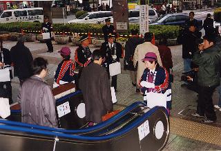 甲府地区消防本部、甲府地区⼥性防⽕クラブでは、JR甲府駅前において、春の全国⽕災予防運動の街頭キャンペーンを⾏い、駅利⽤者にティッシュを⼿渡して⽕災予防を呼び掛けました。