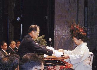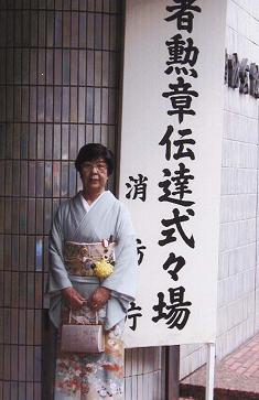 消防関係伝達式は、平成16年5⽉10⽇(⽉)港区⻁ノ門のニッショーホールで午前10時30分から⾏われ、林消防庁⻑官からはれて叙勲の伝達受けられました。