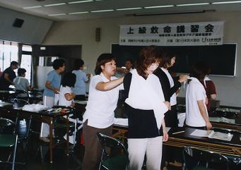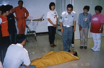 この活動においては、岡崎市婦⼈⾃主防災クラブを始めとして、幼稚園・保育園・⼩中学校、地域の⾃主防災組織等の各種団体への普及活動を強⼒に推進しており、平成13年度実績で259回の救急法講習会を開催し、10,588⼈の多くの市⺠が講習会に参加しました。