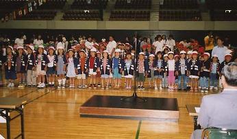 去る、6⽉16⽇(⽔)塩釜市体育館において、当協会の共催で20周年記念となる「幼年消防クラブ地区⼤会」が盛⼤に開催されました。