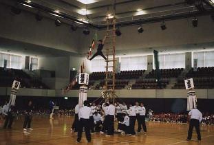 そして、消防職員のはしご乗りなどが⾏われました。クラブ員達は楽しい⼀時を過ごし、最後に全員で「⽕あそびはしません」と⼤きな声で防⽕を誓いました。