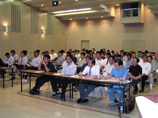 今回は、平成16年6⽉11⽇(⾦)に13時30分から16時00分まで、地下タンクからの油の流出事故を想定し、事故発⽣時の関係機関や事業所の対応⽅法を警察、建設事務所からアドバイザーを招いてパネルディスカッション⽅式にて実施しました。