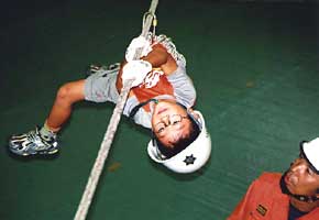 第2部は秩⽗消防署特別救助隊による救助訓練を⾒学、⾼所に張られたロープを隊員が渡ったり降下したりすると、そのたびに園児達の⼤きな拍⼿や歓声が聞こえ、⼤変盛り上がりました。