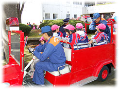 消防フェスティバルでは、幼年消防クラブによる鼓笛演奏、水消火器を使った初期消火訓練、起震車による
