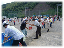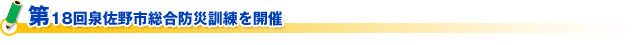 訓練は、マグニチュード8.4の南海地震を想定し、倒壊家屋等の障害物で消防車両などが、けが人 が発生している災害現場に寄りつけないといった、実災害に即した内容で消防本部による救助救出訓 練から始まり、災害対策本部を立ち上げ津波対策訓練や警戒区域設定訓練、初期消火訓練、水防訓 練、ライフライン復旧訓練、町会住民約20人の協力で炊出し訓練等を行い、最後に災害対策本部長 (新田谷泉佐野市長)等が復旧状況を視察し、「正しい防災知識を身に付け、災害に対する備えを万 全にしておくことが重要です。」との講評で訓練が終了しました。