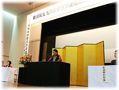 続いて、新潟県女性防火クラブ連絡協議会発足記念式典が行われ、初代会長に選任された橋本会長が挨拶されました。