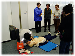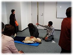 心臓マッサージ(胸部圧迫)の訓練