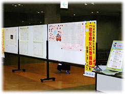 試合前の開会式では、参加者全員による元気いっぱいの防火標語斉唱が行われたほか、会場の随所に防火ポスターや防火標語の掲示、会場入口での住宅用火災警報器展示コーナーの設置等活発な防火PRを行いました。
