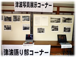 今回、会場において展示した津波語り部コーナー(昭和8年の昭和三陸津波)では、多くの方が足を止め、聞き入っており、今年発生したチリ地震での津波の来襲、また、当地区に大きな被害をもたらしたチリ地震津波(昭和35年)から50年をむかえ、防災に対する意識が特に高まっていることが感じられました。