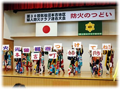 平成22年6月27日(日)気仙沼本吉地区婦人防火クラブ連合会と財団法人日本防火協会の共催による第30回気仙沼本吉地区婦人防火クラブ連合大会「防火のつどい」が気仙沼市保健福祉センター「燦さん館」で開催され、1市1町の婦人防火クラブ員等約450名が参加しました。