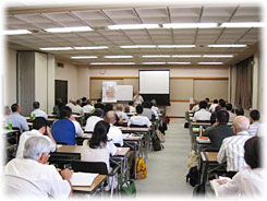 午後は、山口大学の瀧本 浩一准教授による災害図上訓練(DIG)を行いました。まず、地域防災に災害図上訓練DIGの位置付け、災害図上訓練DIGの思想、DIGを含めた防災研修を行う上での注意点などが説明された後、実習に入りました。