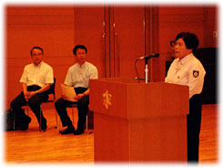 また、研修会では(財)日本防火協会益本圭太郎常務理事を講師にお迎えし、「住宅用火災警報器の普及に係る婦人防火クラブ員への期待」をテーマにご講演いただきました。住宅用火災警報器の普及に向け、私たちクラブ員に求められる大きな役割を再認識しただけではなく、これまで取り組んできた共同購入がとても効果的であることをお聞きし、本年度は、より一層弾みをつけて取り組みたいと決意しました。