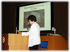 講演後は、3つのクラブから事例発表を行い、活動内容のほか毎年東京で開催される「市町村婦人(女性)防火クラブ幹部研修会」や近畿府県が持ち回りで開催している「近畿ブロック婦人防火クラブ幹部研修会」での情報も盛り込みました。これは役員会での委員の意見を反映させたもので、研修会に参加した者だけではなくクラブ員に情報を還元することによって、研修の成果を最大限に生かせるように取り組んだものです。