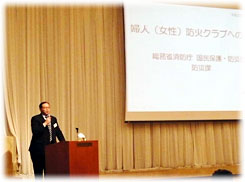 研修1日目は、総務省消防庁国民保護・防災部防災課 小野山震災対策専門官に「婦人(女性)防火クラブへの期待」と題し、講演いただきました。その後、各道県の代表者による活動報告が行われ、活発な活動内容が発表されました。