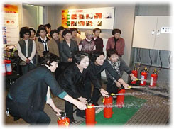 消火器を使っての消火体験