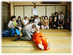 高知消防防火クラブ委員会では、(財)日本防火協会の助成事業として心肺蘇生用教育人体モデル等の寄贈を受け、9月18日、9月19日、9月20日の3日間、婦人防火クラブ員による救急講習会を実施し、婦人防火クラブ員約100名が受講しました。