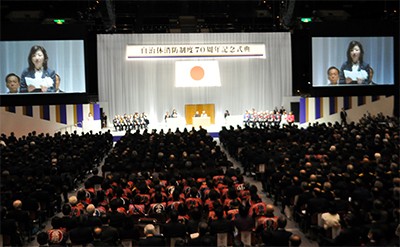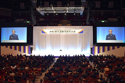消防・防災活動活性化大会 式典に引き続き、自治体消防制度70周年を記念し、「消防・防災活動活性化大会」が開催されました。