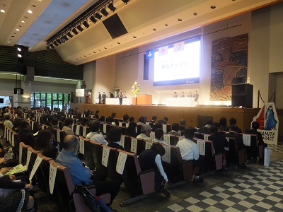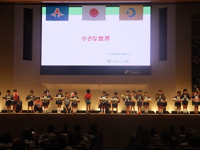 続いて「みんなで歌おう!ひとつの歌を!」をスローガンに、「てのひらをたいように」と、つどい記念歌「ともだちさんか」を参加者全員で大合唱をしました。