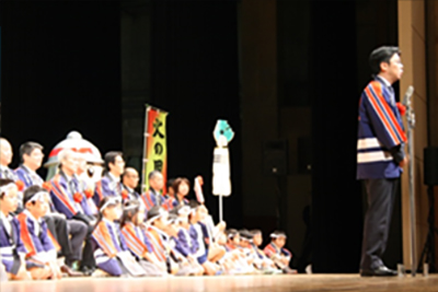 第1部式典では、防火委員会会長の開会宣言及び来賓祝辞をいただいた後、代表の幼年消防クラブ員が壇上から、