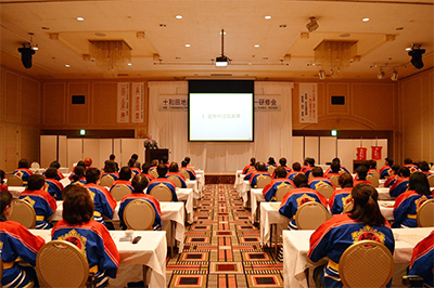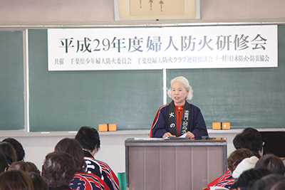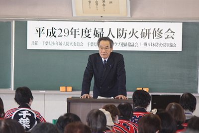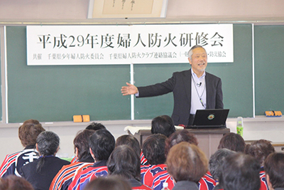 大寒が過ぎた平成30年1月24日(水)、千葉県消防学校講堂に県下各地から防火クラブ員をはじめ消防防災関係者多数のご参集をいただき、「平成29年度婦人防火研修会」が開催されました。