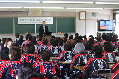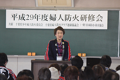 午前中は、千葉県婦人防火クラブ連絡協議会長である私から「住宅防火対策について」と題して講話をいたしました。