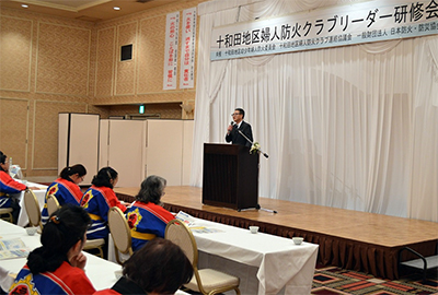 終わりに、婦人(女性)防火クラブ員、自主防災組織、消防防災関係者が一丸となって、住警器や防炎品の普及促進、住警器のメンテナンスになお一層のご尽力いただくようお願いしました。