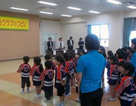 高岡市では、市内4消防署が(一財)日本防火・防災協会の共催により、幼稚園、保育園のクラブ員を対象とした「幼年消防クラブの集い」を毎年開催しています。