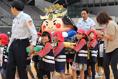 多くの園児が立ち上がりながら「レスキューマン」に声援を送るなど、楽しく防火・防災を学び充実した大会となりました。