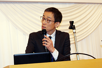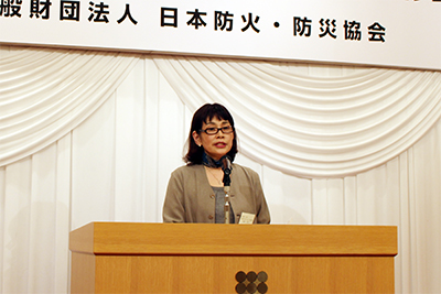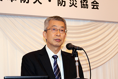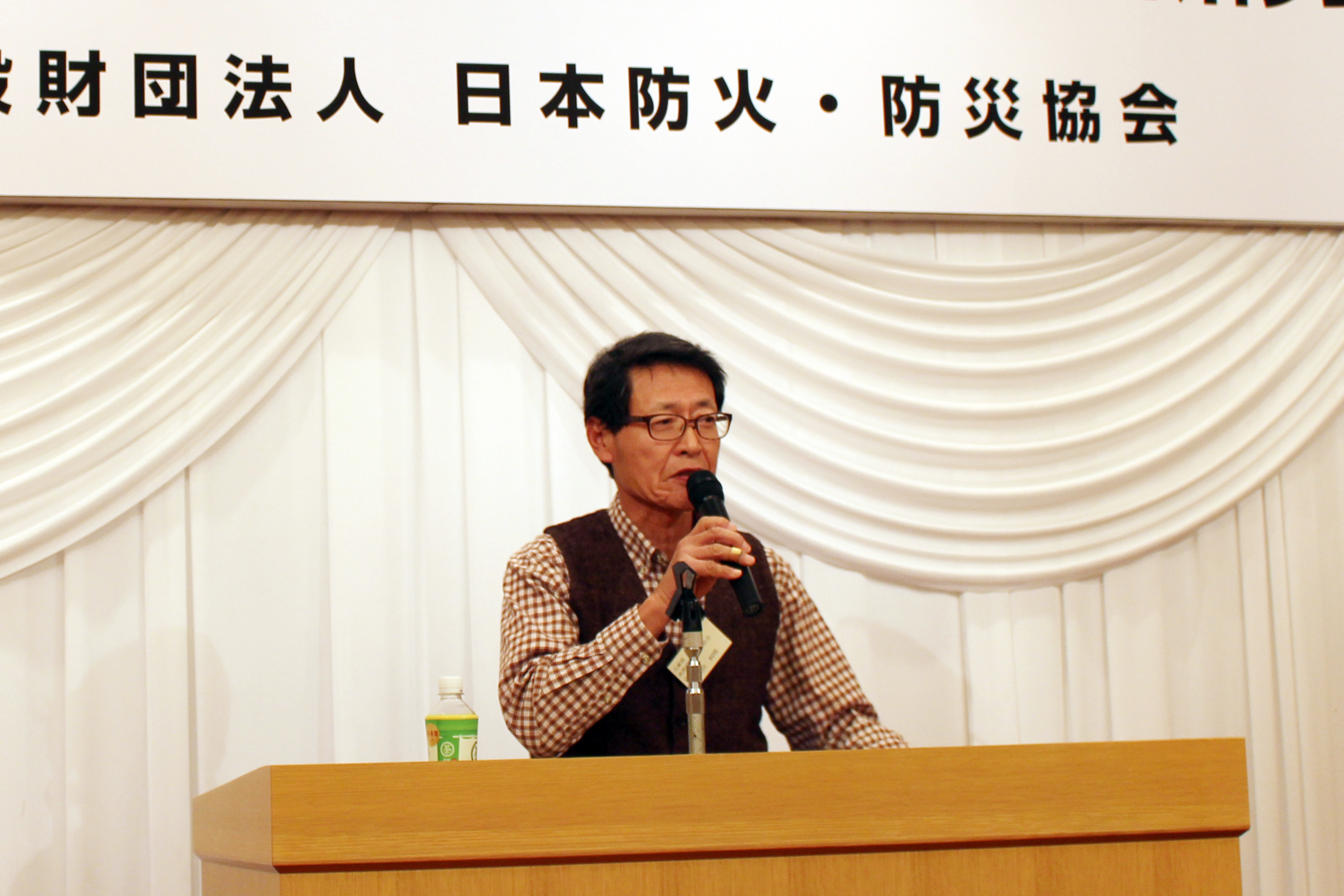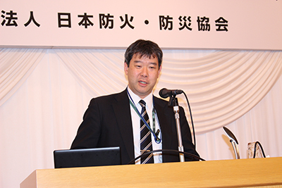 総務省消防庁 国民保護・防災部 地域防災室長 田中 昇治氏より、地域全体の防災力を向上させるため政府が取り組んでいる自主防災組織の活動の中心となるリーダー等の育成支援の施策について、また、組織の重要性や、そのために消防庁が作成した手引書の内容と取り組みについて、さらに、自主防災組織に関する諸制度の解説や、教育訓練の制度、および「防災まちづくり大賞」等について講演を行っていただきました。