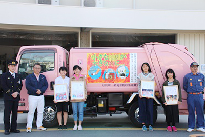 入賞した4作品については、吉永商店株式会社の御協力により、ゴミ収集車に掲示していただき、火災予防広報の一躍を担っていただいています。