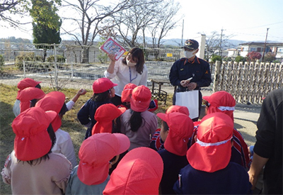 幼年消防クラブについては、幼稚園や保育園に伺い、防火啓発品の配布を行いました。