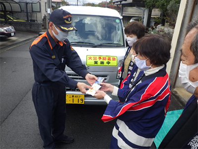 単体の女性防火クラブ活動の一環として各家庭の住宅用火災警報器や住宅用消火器の状況確認などを行っており、その際にあわせて防火啓発品を配布する予定です。