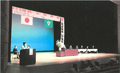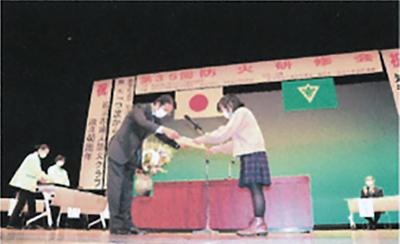 郷内会長の挨拶で開幕、続いて市内小学校から募集した優秀防火・防災作品の表彰が行われポスターの部、標語の部、作文の部の入賞者に表彰状及び記念品が贈られました。受賞後、作文の部最優秀賞として岩沼西小学校4年生 平間 黄さんの題名「つ波から生きのこれ」の発表がありました。受賞した作品は今後、市民の防火意識の高揚に寄与するものと思います。