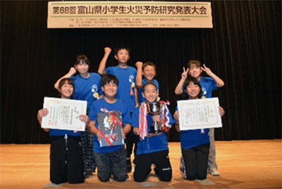 富山県では、毎年、秋季全国火災予防運動にあわせて、県内の小学生を対象とする火災予防に関する研究、体験等についての発表大会を開催し、防火思想の普及・啓発と少年消防クラブの発展向上を図り、火災のない安全で住み良い地域づくり・郷土づくりを推進しています。