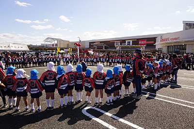 今回は晴天にも恵まれ、屋外での訓練4種目、くす玉・防火の誓い唱和、防火パレード、ふれあい広場開催と久しぶりに大規模なクラブ大会となりました。参加の園児はこれらの体験から、防災意識、各種災害に対応する力を身につける機会になったのではないかと思います。