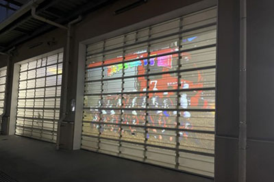 また、9月1日(金)~10月25日(水)にかけて消防職員が20ヶ所の園訪問を行い、秋季全国火災予防運動期間中にそのとき撮影した集合写真を消防本部車庫のシャッターに投影する「火の用心!プロジェクションマッピング」及び撮影した動画をYouTubeに公開しました。