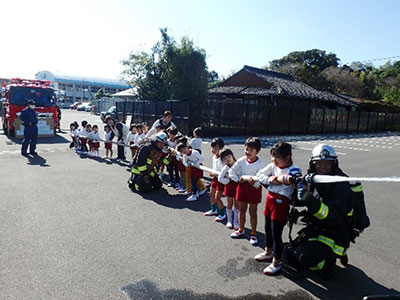 新型コロナウイルス及びインフルエンザ感染症拡大防止の観点から、令和5年11月9日(木)から17日(金)までの間に6幼年消防クラブが園ごとに実施しました。