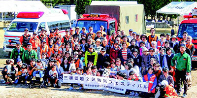 「誰一人取り残さない避難」を目標とし、防災フェスティバル、防災研修遠足、防災クリスマス会などの皆が楽しめる行事を通じて、多くの住民が交流し、心配し合う心(支え愛)を醸成する活動を行っています。