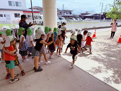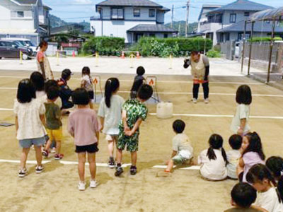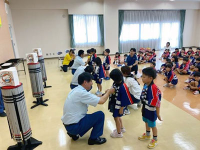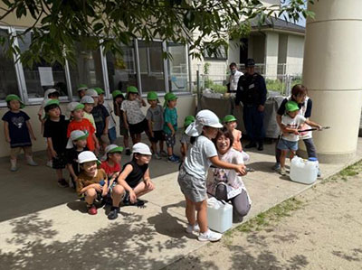 令和7年6月16日(日)から7月11日(金)の期間に姶良市内の各園(所)、各小学校において、(一財)日本防火・防災協会との共催により模擬消火大会を実施しました。