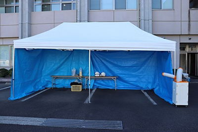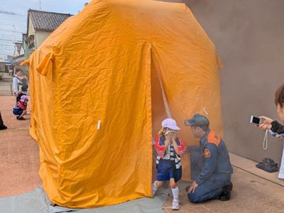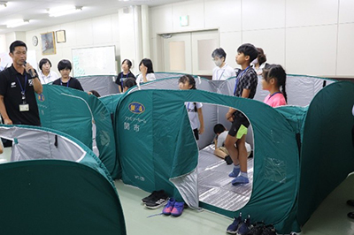 最後に講師(関市危機管理課職員)から関市で起きた災害をもとに避難所について話を聞き、パーティションや携帯トイレの組み立てを行いました。