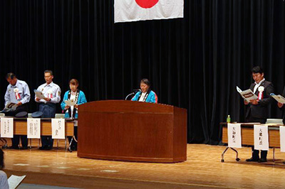 続いて「防火宣言」の唱和と、婦人防火クラブ音頭発祥の地として、普及会の皆様に「婦人防火クラブ音頭」と「消防音頭」の踊りを披露していただきました。